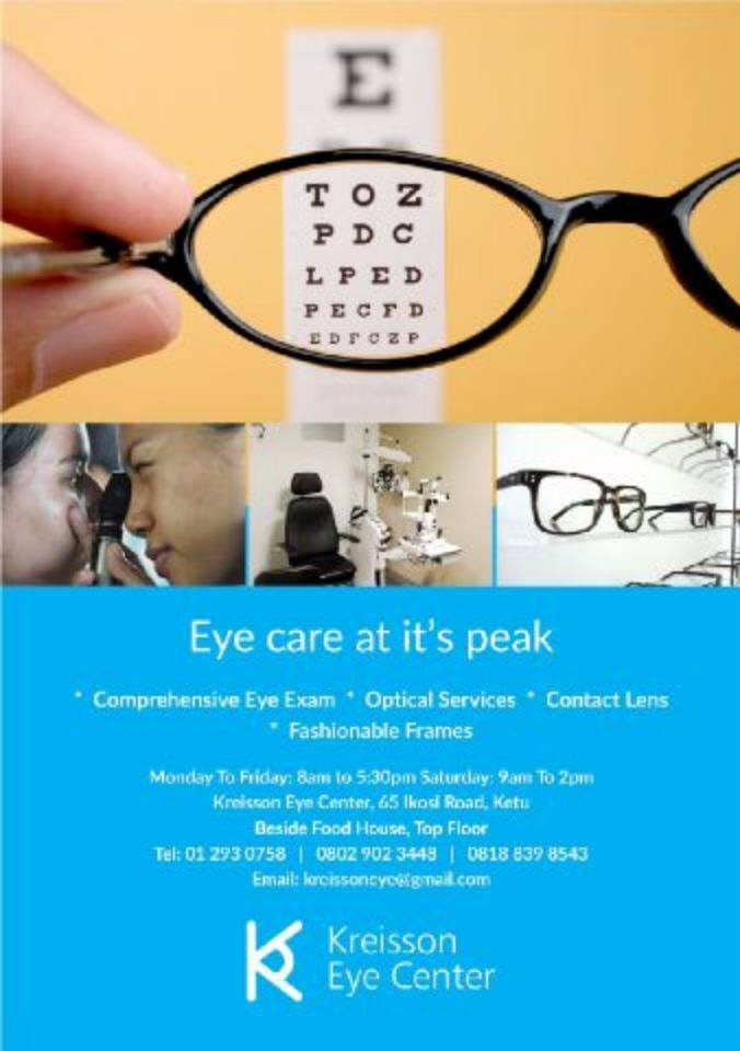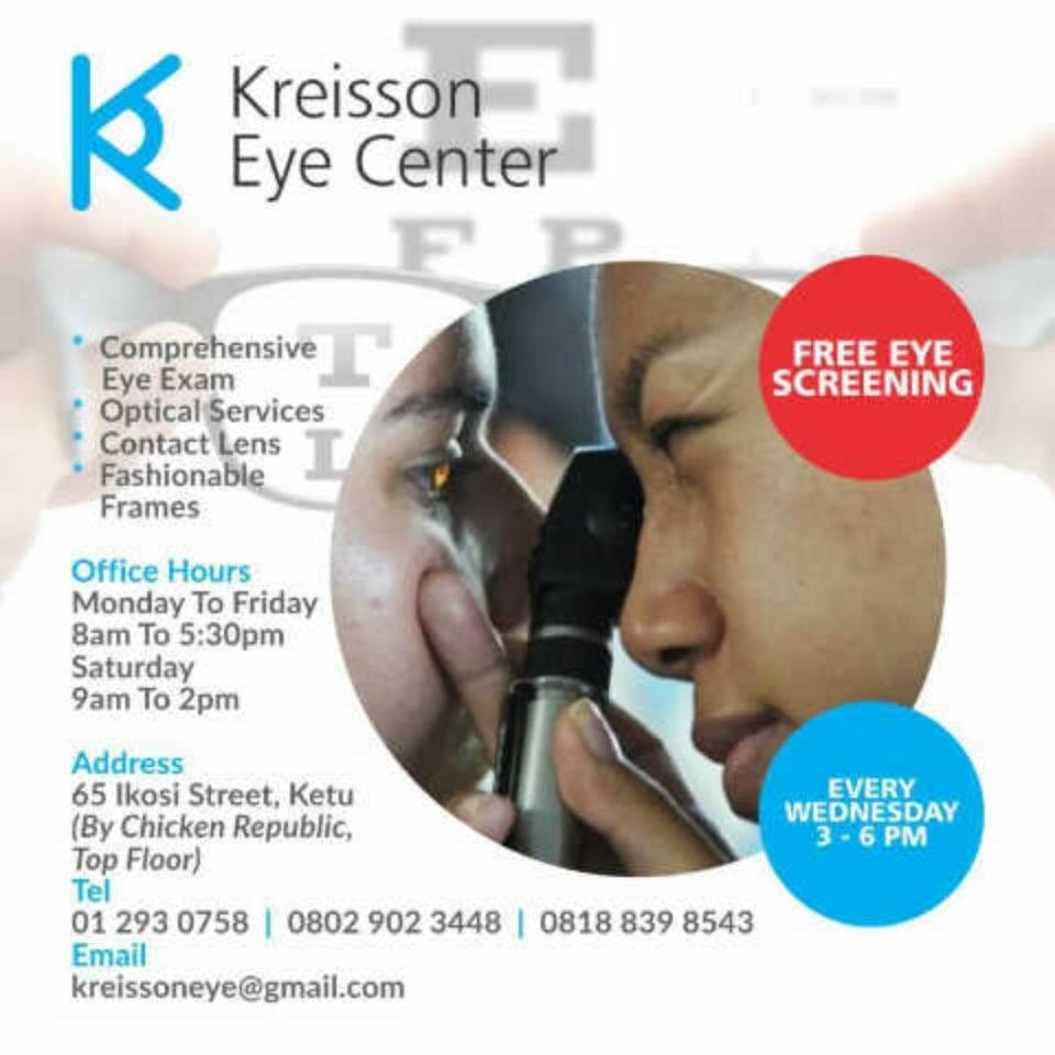 Kreisson eye center gives the best optometry service in Ketu, that's on period!. The facility is so convenient and easy to locate. The staffs are nice too. You get the best there and they're affordable. Good job guys