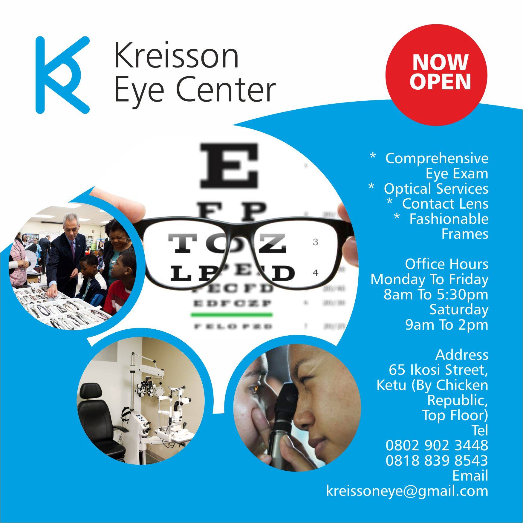 Kreisson Eye center performs its services with utmost professionalism.One of the best in Lagos,Nigeria.